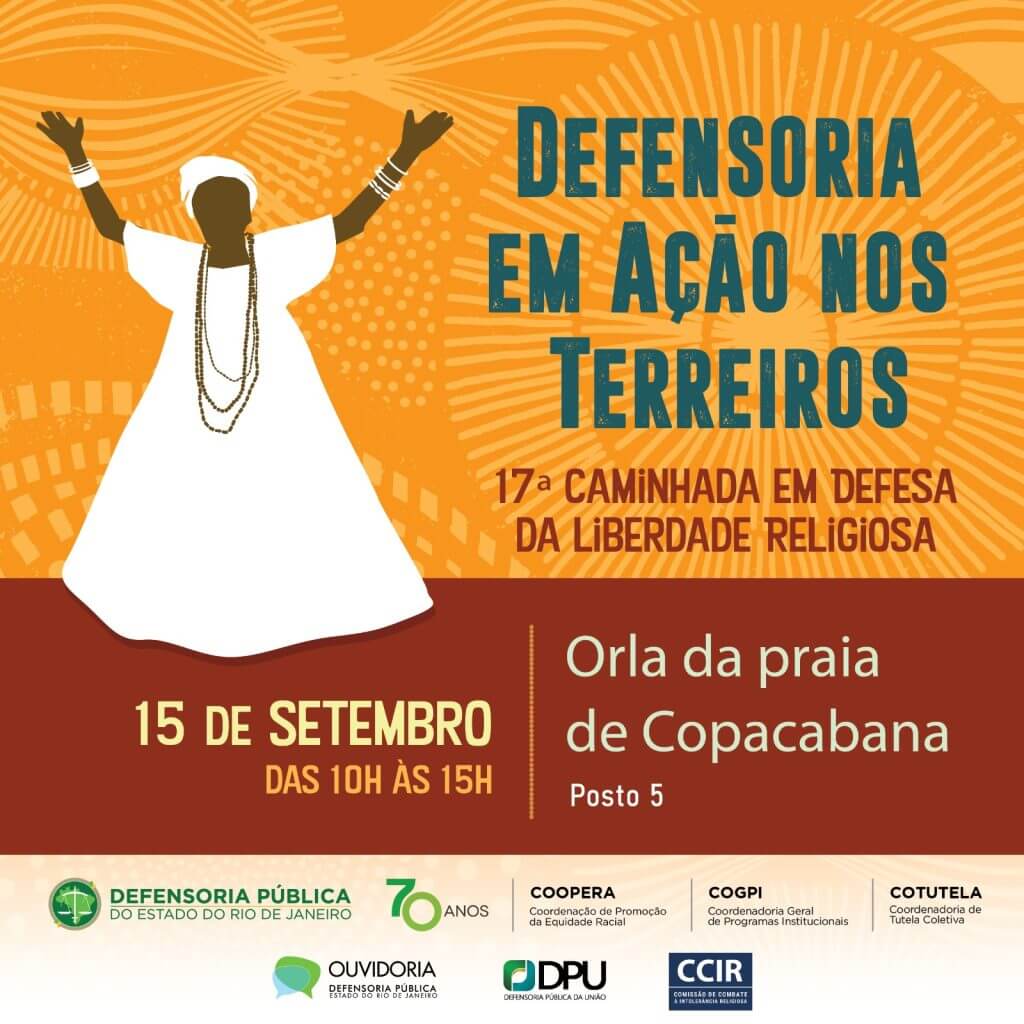 Igualmente importante também a ação da Defensoria Pública do Estado doRio de Janeiro, com o projeto “Defensoria em ação nos terreiros“. A ação acontecerá durante a Caminhada e tem por objetivo oferecer aos religiosos de todo o Estado do Rio de Janeiro a oportunidade de solucionar dúvidas jurídicas e denunciar casos de racismo, dentre outras demandas.